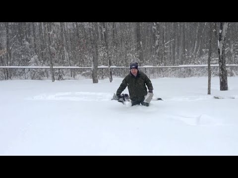 A blizzard in New Hampshire didn’t stop this family from taking their Cocker Spaniels and French Bulldog outdoors for some fun. As dad slogs through a few feet of snow to make a trail for the dogs, the dogs chase after him and follow his every step. Watching them hop behind him in unison is so adorable!